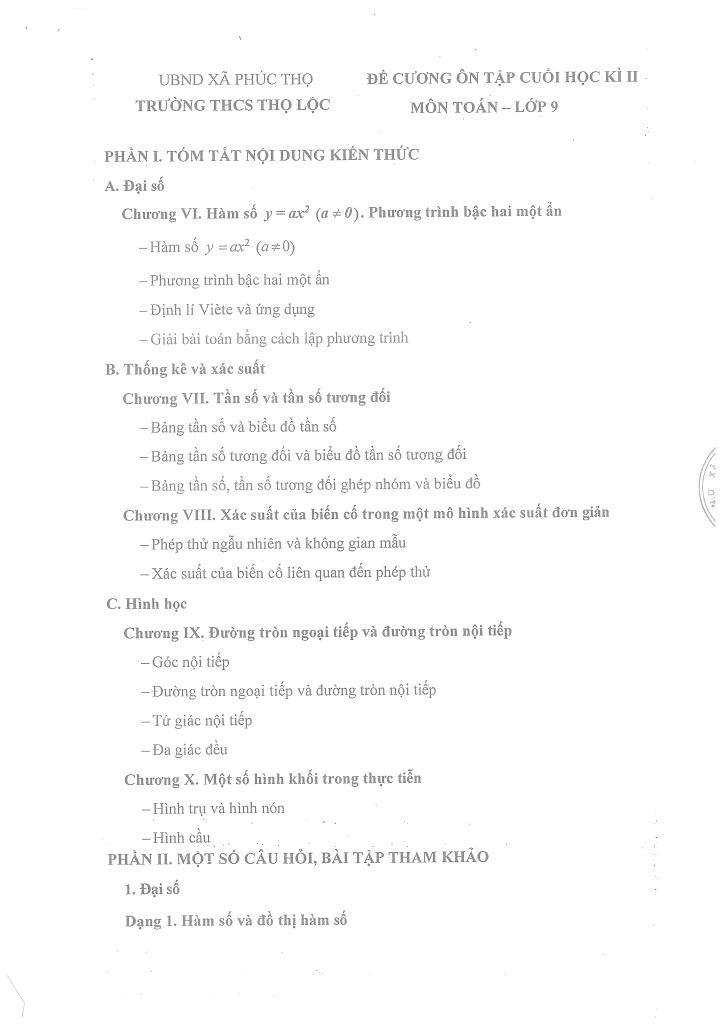 giaitoan.edu.vn giới thiệu đến quý thầy, cô giáo và các em học sinh đề cương ôn tập cuối học kì 2 môn Toán 9 năm học 2025 – 2026 trường THCS Thọ Lộc, xã Phúc Thọ, thành phố Hà Nội.