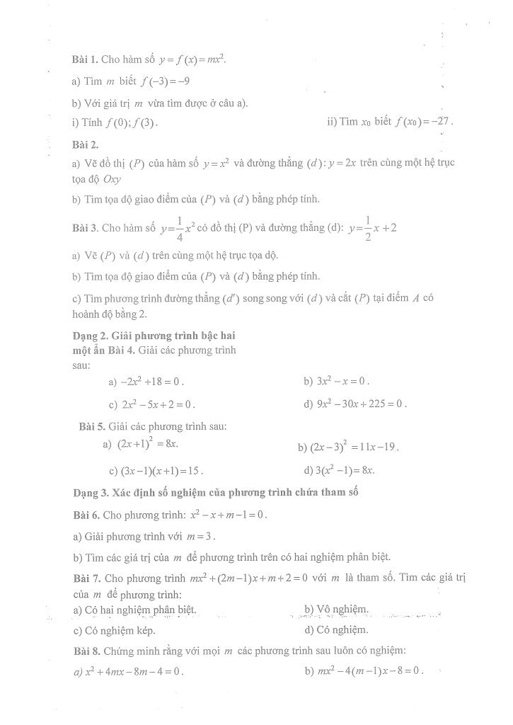 Chương VI. Hàm số y = ax² (a ≠ 0). Phương trình bậc hai một ẩn.