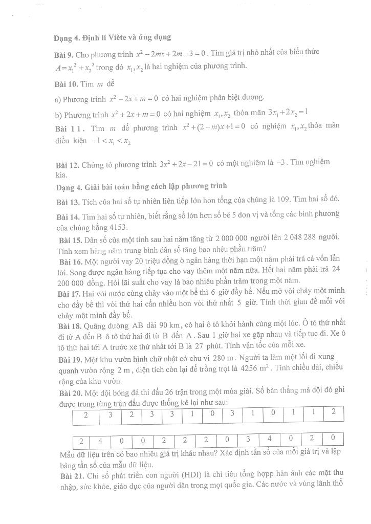 – Dạng 4. Định lí Viète và ứng dụng.