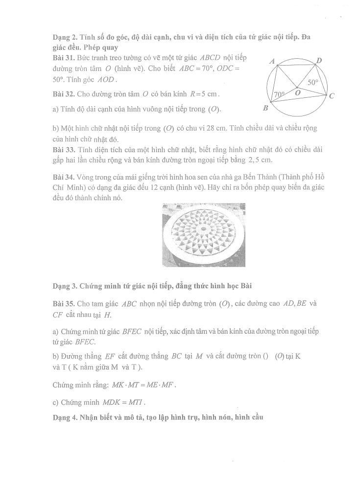 – Dạng 2. Tính số đo góc, độ dài cạnh, chu vi và diện tích của tứ giác nội tiếp. Đa giác đều. Phép quay.