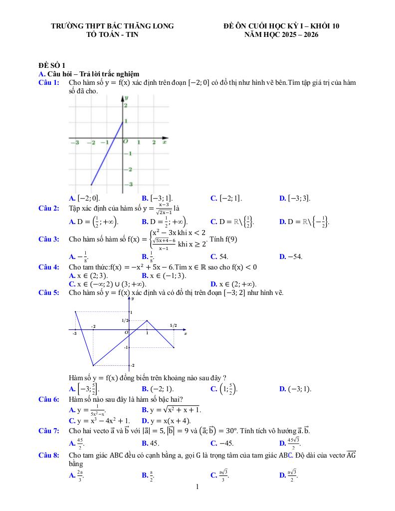 Giải Toán đề cương cuối kì 1 toán 10 năm 2025 – 2026 trường thpt bắc thăng long – hà nội với Đáp Án Mới Nhất