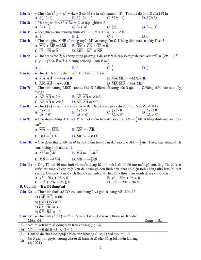 Toán học luôn là một môn học quan trọng, giúp học sinh phát triển tư duy logic và kỹ năng giải quyết vấn đề. Để hỗ trợ các bạn học sinh và giáo viên trong việc học tập và giảng dạy, bài viết này sẽ cung cấp lời giải chi tiết và đáp án chính xác cho chủ đề đề cương cuối kì 1 toán 10 năm 2025 – 2026 trường thpt bắc thăng long – hà nội, giúp bạn hiểu sâu và tự tin hơn khi làm bài tập.