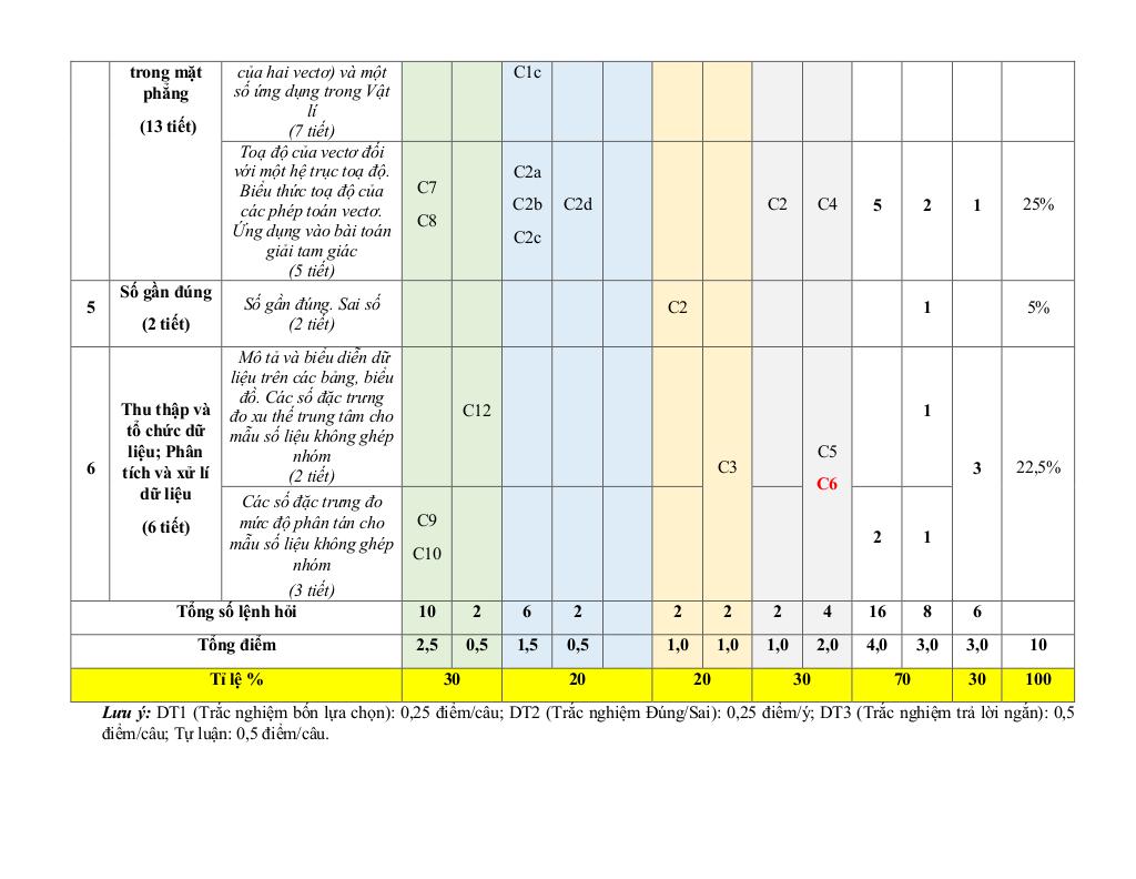+ Vectơ, các phép toán (tổng và hiệu hai vectơ, tích của một số với vectơ, tích vô hướng của hai vectơ) và một số ứng dụng trong Vật lí (7 tiết).