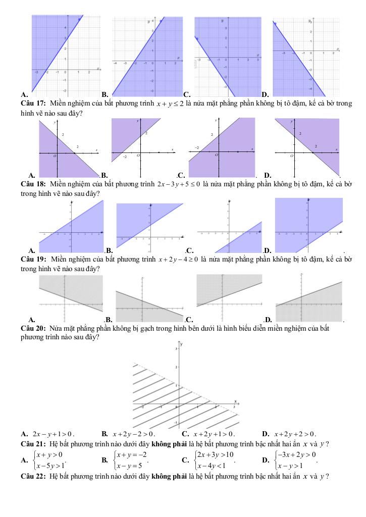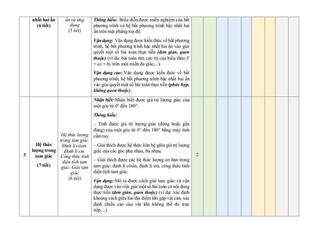 + Bất phương trình, hệ bất phương trình bậc nhất hai ẩn và ứng dụng (5 tiết).