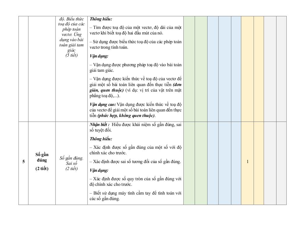 + Toạ độ của vectơ đối với một hệ trục toạ độ. Biểu thức toạ độ của các phép toán vectơ. Ứng dụng vào bài toán giải tam giác (5 tiết).