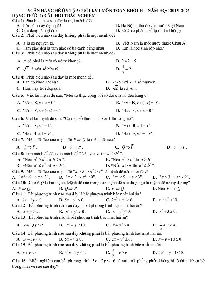 Toán học luôn là một môn học quan trọng, giúp học sinh phát triển tư duy logic và kỹ năng giải quyết vấn đề. Để hỗ trợ các bạn học sinh và giáo viên trong việc học tập và giảng dạy, bài viết này sẽ cung cấp lời giải chi tiết và đáp án chính xác cho chủ đề đề cương cuối kì 1 toán 10 năm 2025 – 2026 trường thpt hướng hóa – quảng trị, giúp bạn hiểu sâu và tự tin hơn khi làm bài tập.