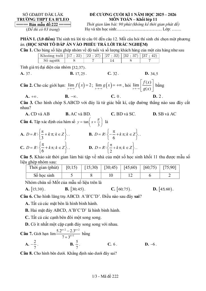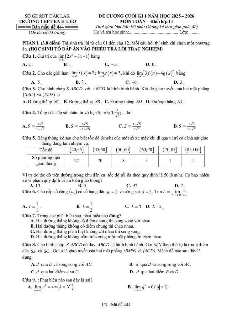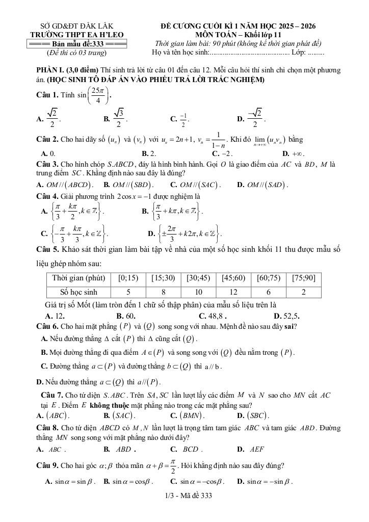 Toán học luôn là một môn học quan trọng, giúp học sinh phát triển tư duy logic và kỹ năng giải quyết vấn đề. Để hỗ trợ các bạn học sinh và giáo viên trong việc học tập và giảng dạy, bài viết này sẽ cung cấp lời giải chi tiết và đáp án chính xác cho chủ đề đề cương cuối kì 1 toán 11 năm 2025 – 2026 trường thpt ea h’leo – đắk lắk, giúp bạn hiểu sâu và tự tin hơn khi làm bài tập.
