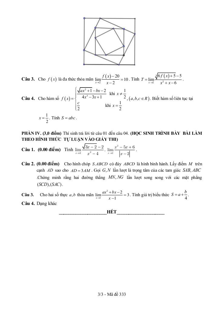 PHẦN IV. (3,0 điểm) Thí sinh trả lời từ câu 01 đến câu 04. (HỌC SINH TRÌNH BÀY BÀI LÀM THEO HÌNH THỨC TỰ LUẬN VÀO GIẤY THI).