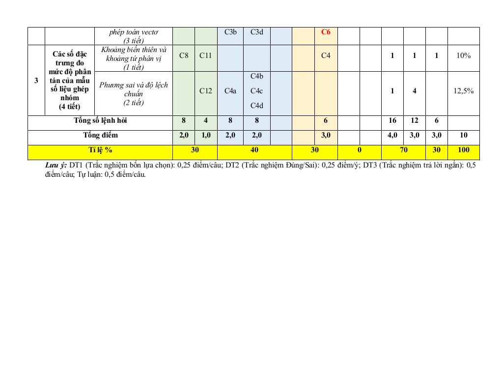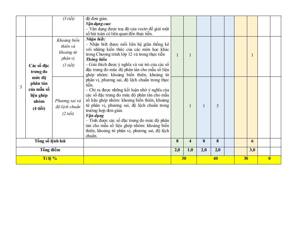+ Khoảng biến thiên và khoảng tứ phân vị (1 tiết).