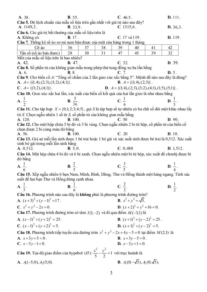 – Mô tả được các tính chất cơ bản của xác suất.