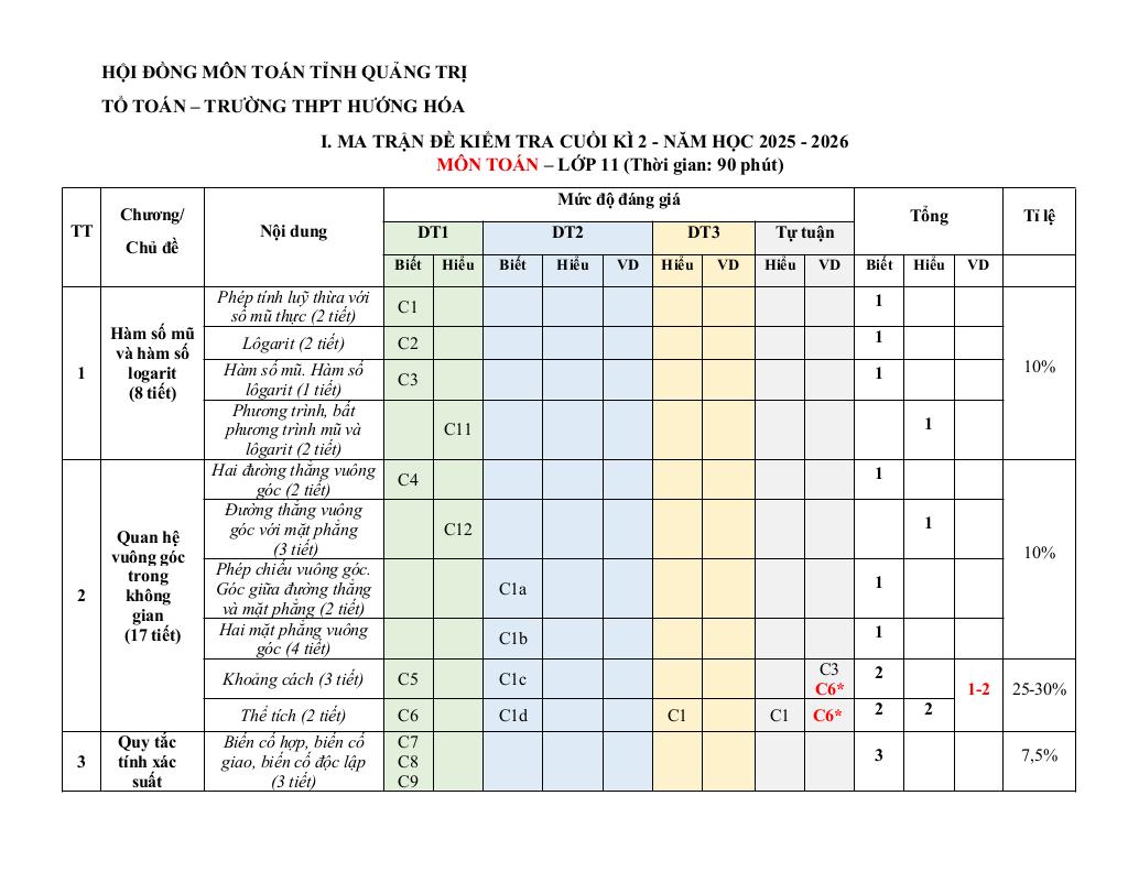 Toán học luôn là một môn học quan trọng, giúp học sinh phát triển tư duy logic và kỹ năng giải quyết vấn đề. Để hỗ trợ các bạn học sinh và giáo viên trong việc học tập và giảng dạy, bài viết này sẽ cung cấp lời giải chi tiết và đáp án chính xác cho chủ đề đề cương cuối kì 2 toán 11 năm 2025 – 2026 trường thpt hướng hóa – quảng trị, giúp bạn hiểu sâu và tự tin hơn khi làm bài tập.