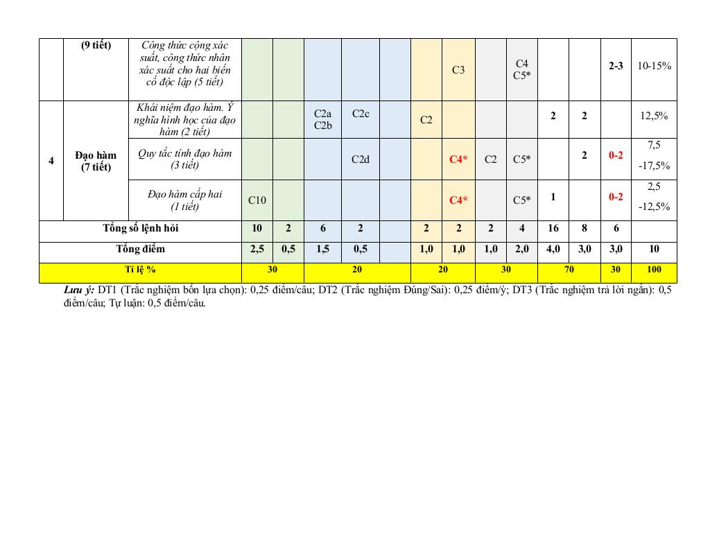 4 Đạo hàm (7 tiết).