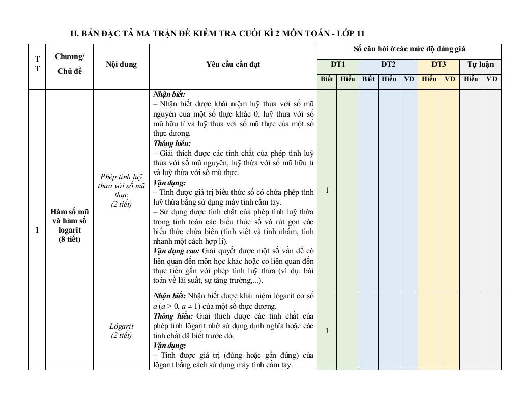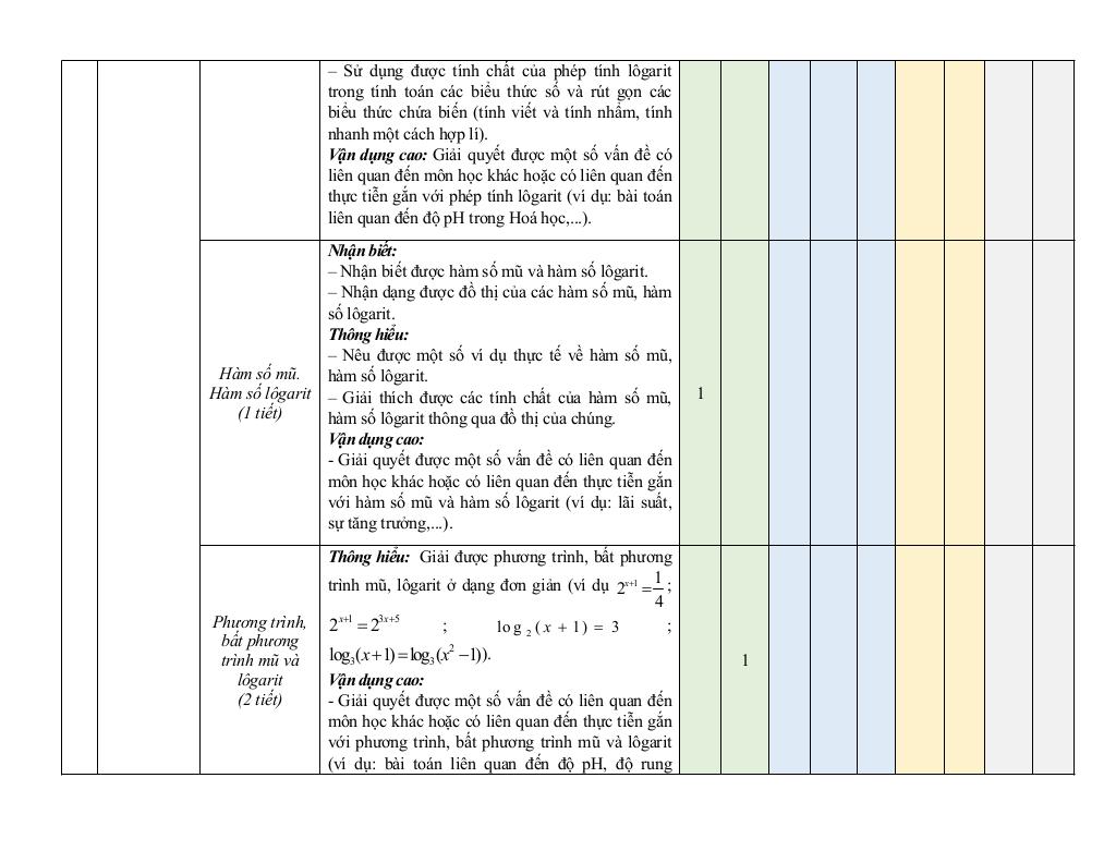 1 Hàm số mũ và hàm số logarit (8 tiết).