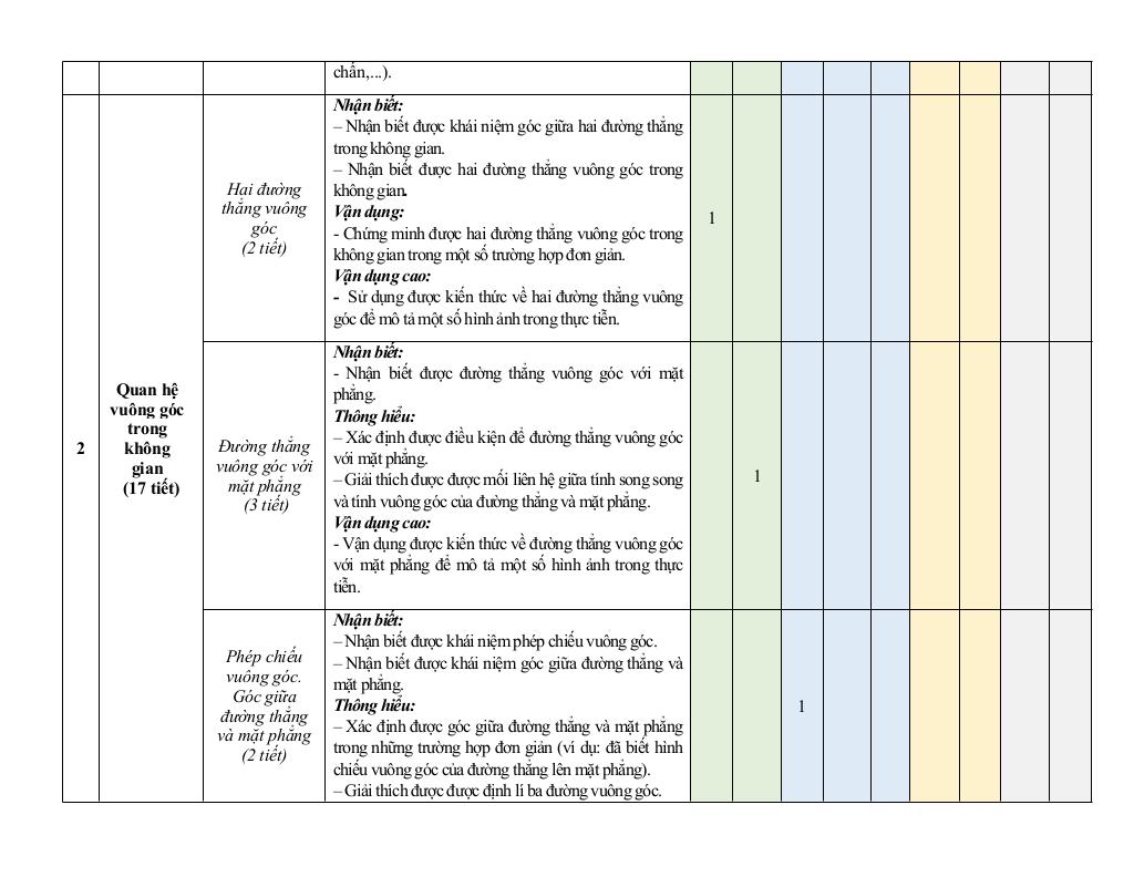 2 Quan hệ vuông góc trong không gian (17 tiết).