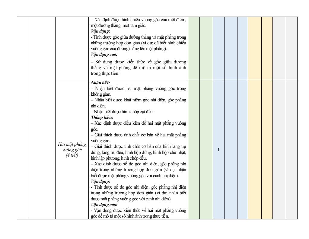 + Hai mặt phẳng vuông góc (4 tiết).