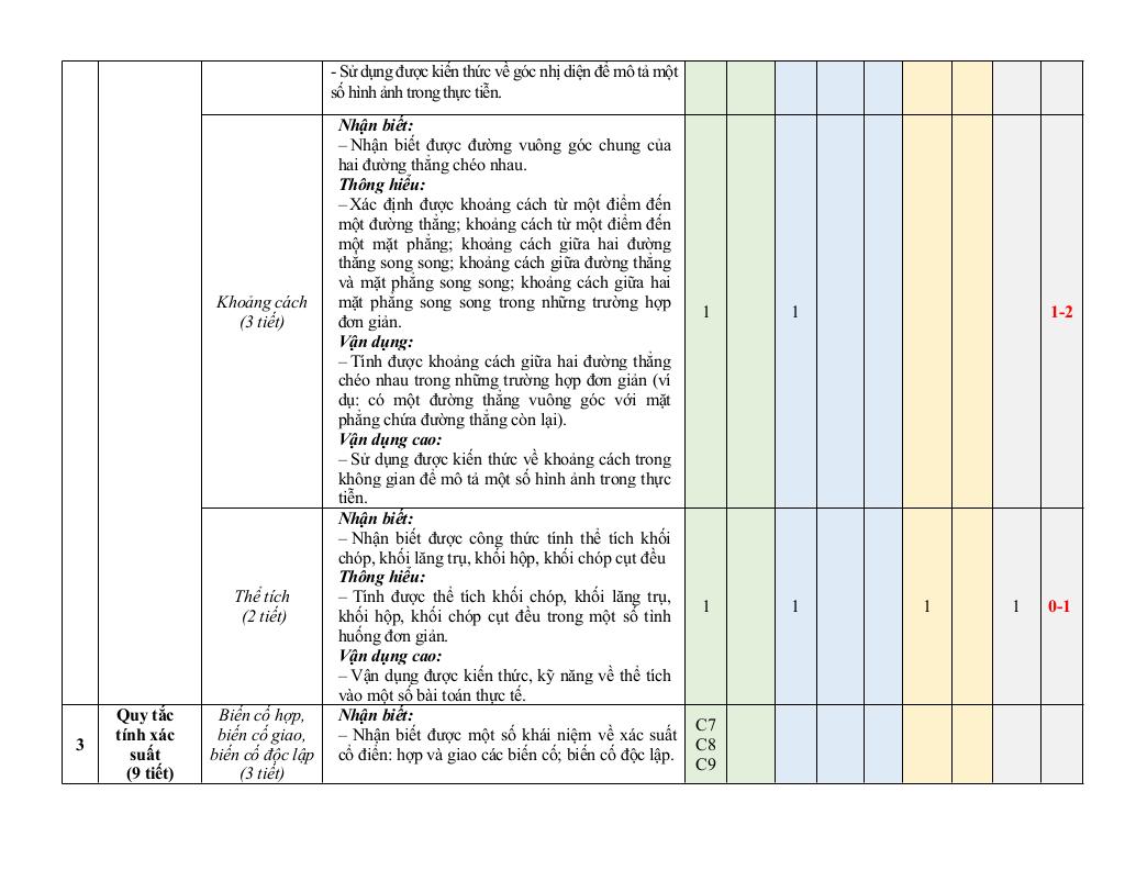 + Thể tích (2 tiết).