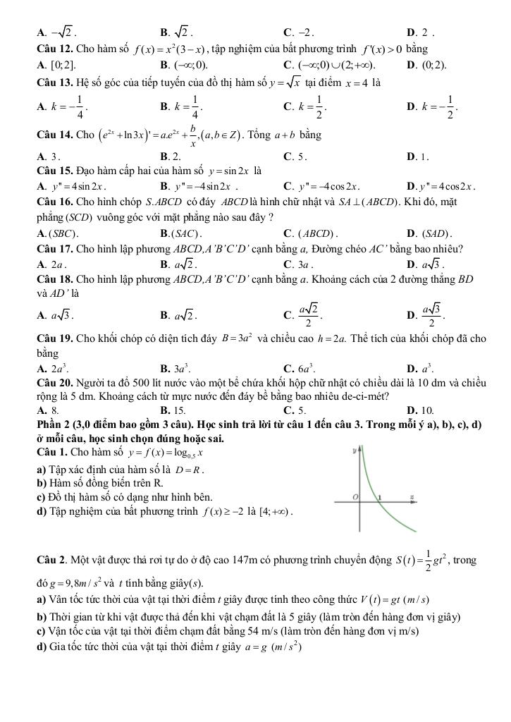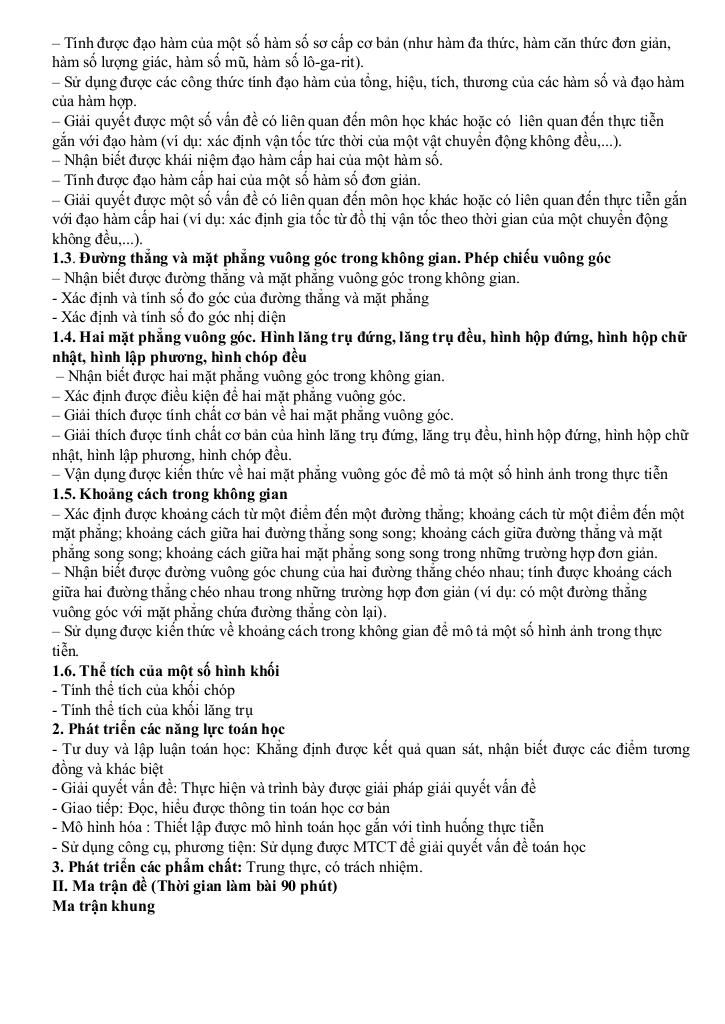 – Tính được đạo hàm của một số hàm số sơ cấp cơ bản (như hàm đa thức, hàm căn thức đơn giản, hàm số lượng giác, hàm số mũ, hàm số lô-ga-rit).