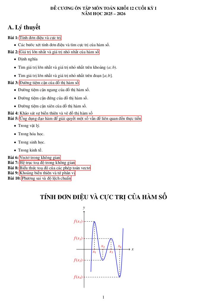 giaitoan.edu.vn giới thiệu đến quý thầy, cô giáo và các em học sinh đề cương ôn tập cuối học kỳ 1 môn Toán 12 năm học 2025 – 2026 trường THPT Đức Trọng, tỉnh Lâm Đồng.