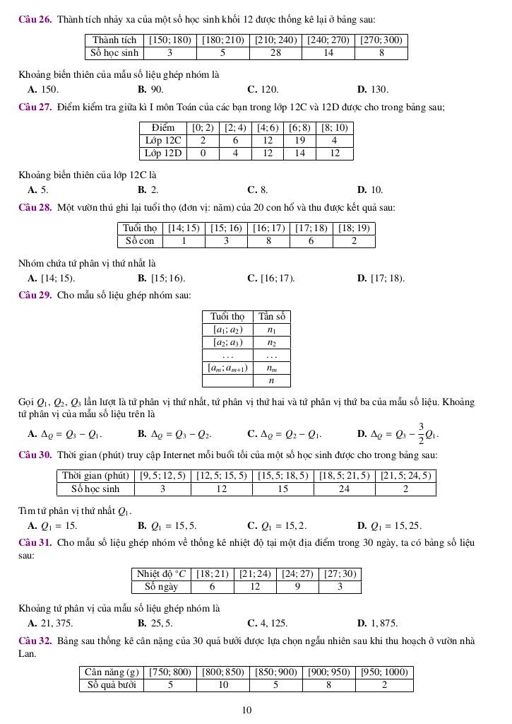 Bài 9: Khoảng biến thiên và tứ phân vị.