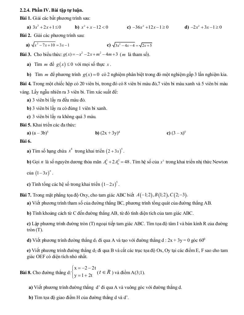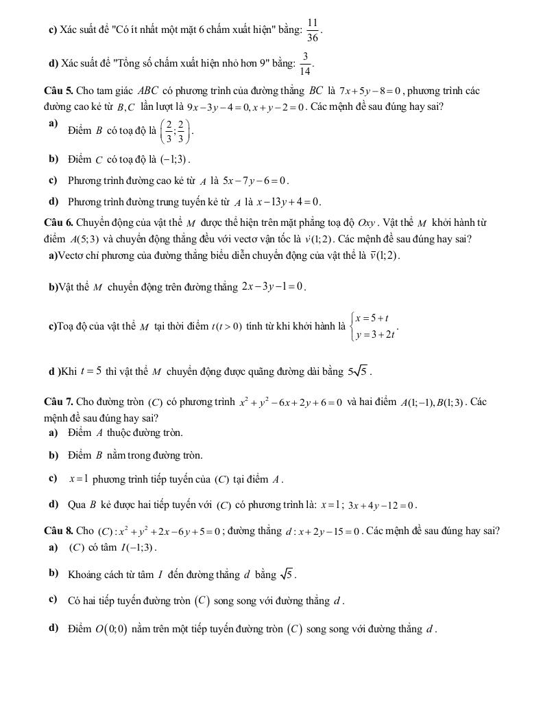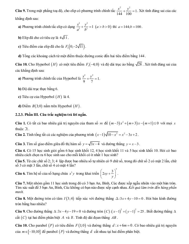 Giải Toán đề cương cuối kỳ 2 toán 10 năm 2025 – 2026 trường thpt hoàng văn thụ – hà nội với Đáp Án Mới Nhất