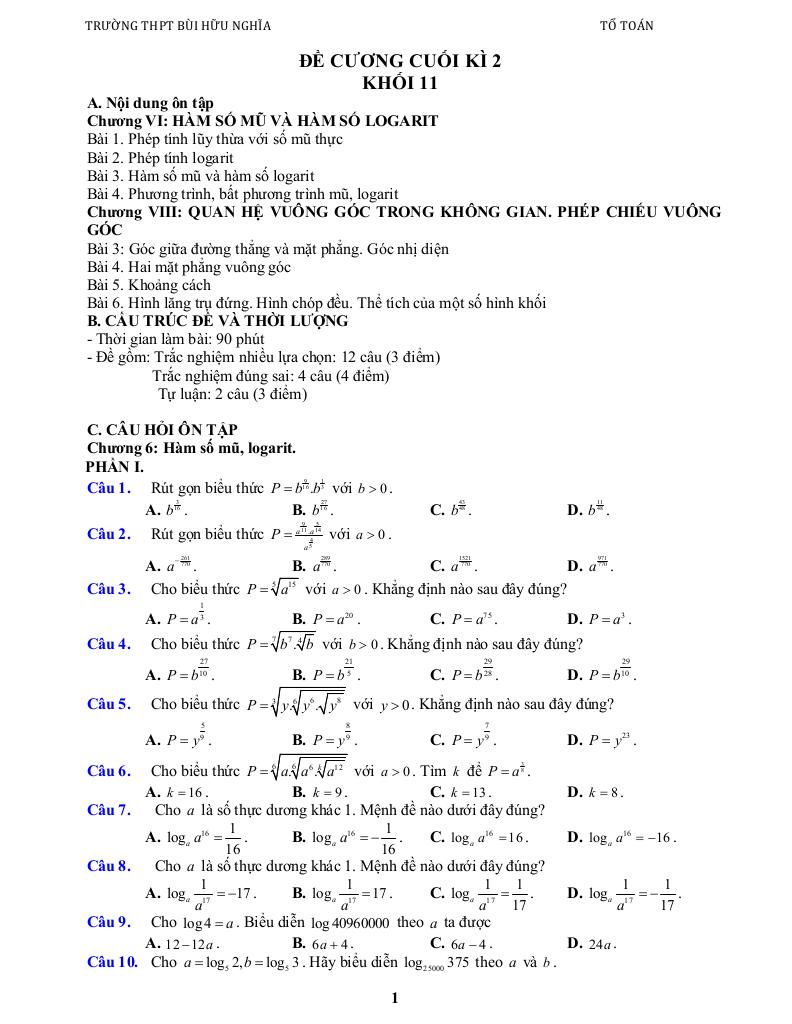 Toán học luôn là một môn học quan trọng, giúp học sinh phát triển tư duy logic và kỹ năng giải quyết vấn đề. Để hỗ trợ các bạn học sinh và giáo viên trong việc học tập và giảng dạy, bài viết này sẽ cung cấp lời giải chi tiết và đáp án chính xác cho chủ đề đề cương cuối kỳ 2 toán 11 năm 2025 – 2026 trường thpt bùi hữu nghĩa – cần thơ, giúp bạn hiểu sâu và tự tin hơn khi làm bài tập.