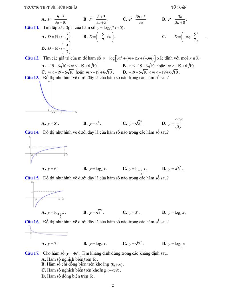 Chương VI: HÀM SỐ MŨ VÀ HÀM SỐ LOGARIT.