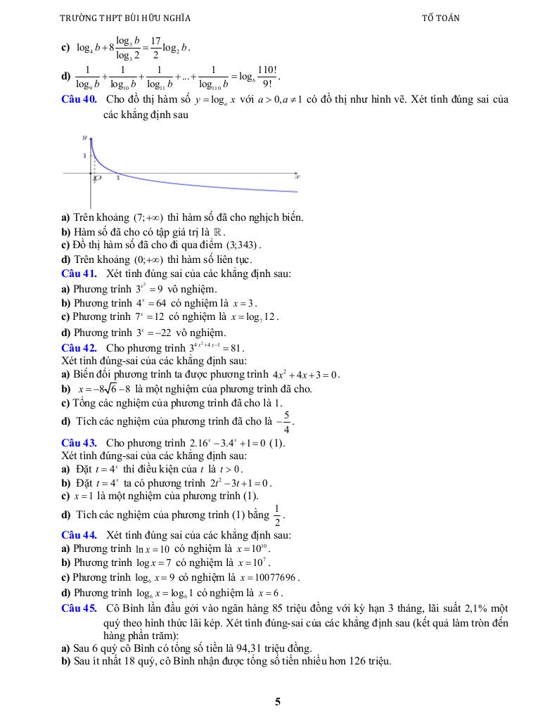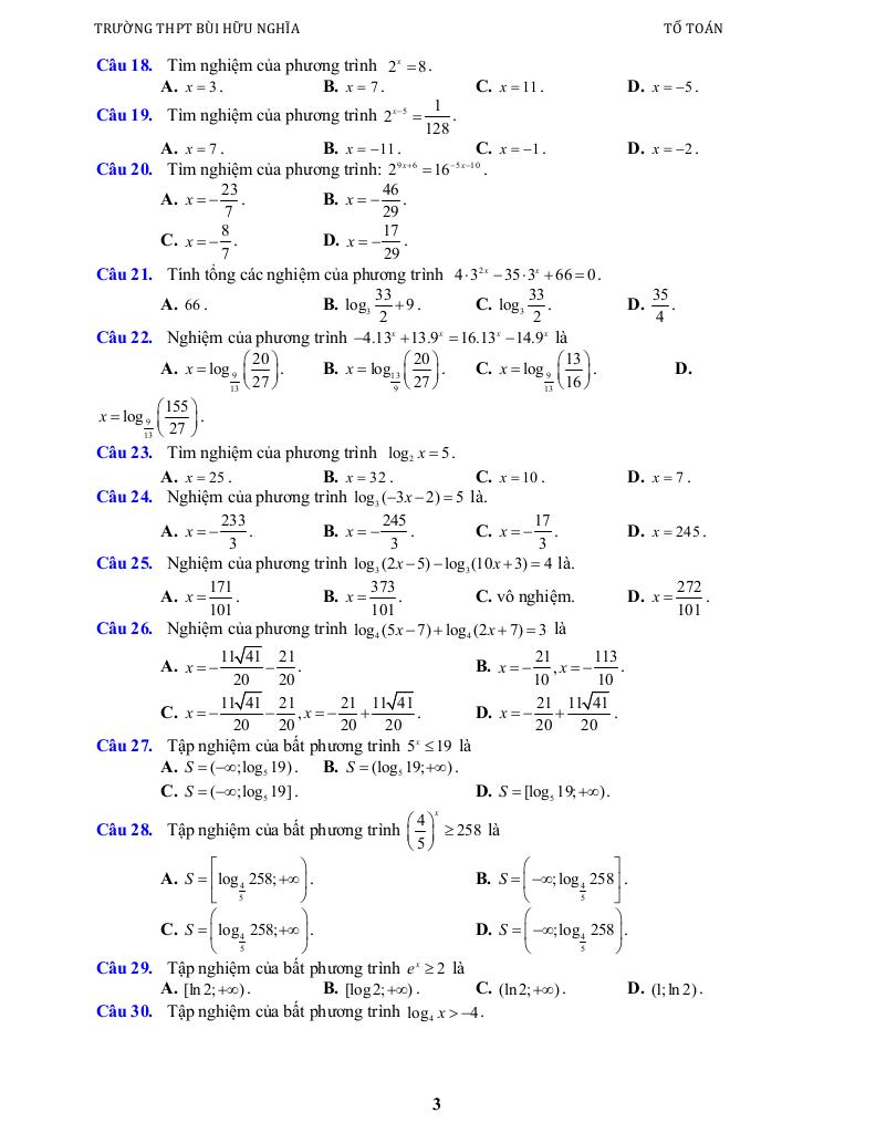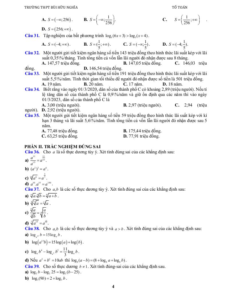 + Bài 4. Phương trình, bất phương trình mũ, logarit.