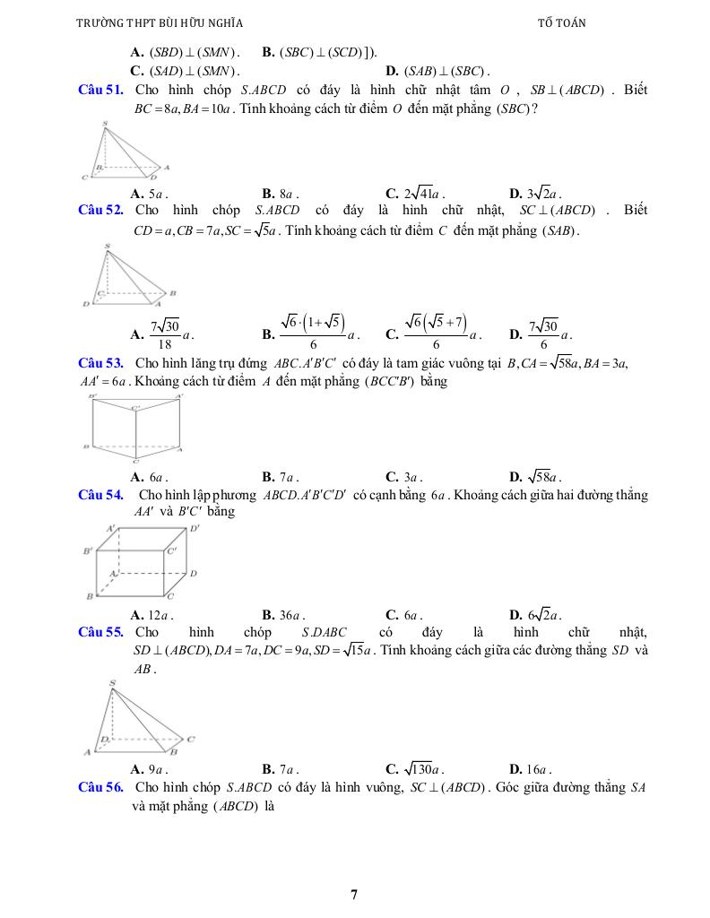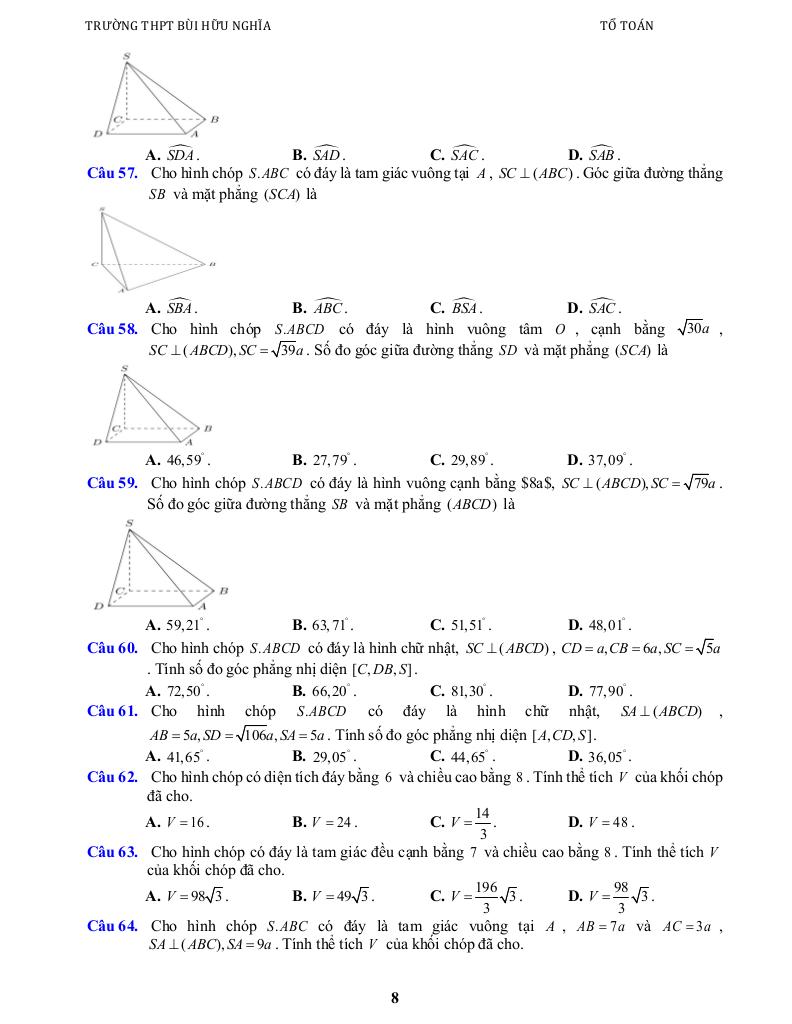 Chương VIII: QUAN HỆ VUÔNG GÓC TRONG KHÔNG GIAN. PHÉP CHIẾU VUÔNG GÓC.
