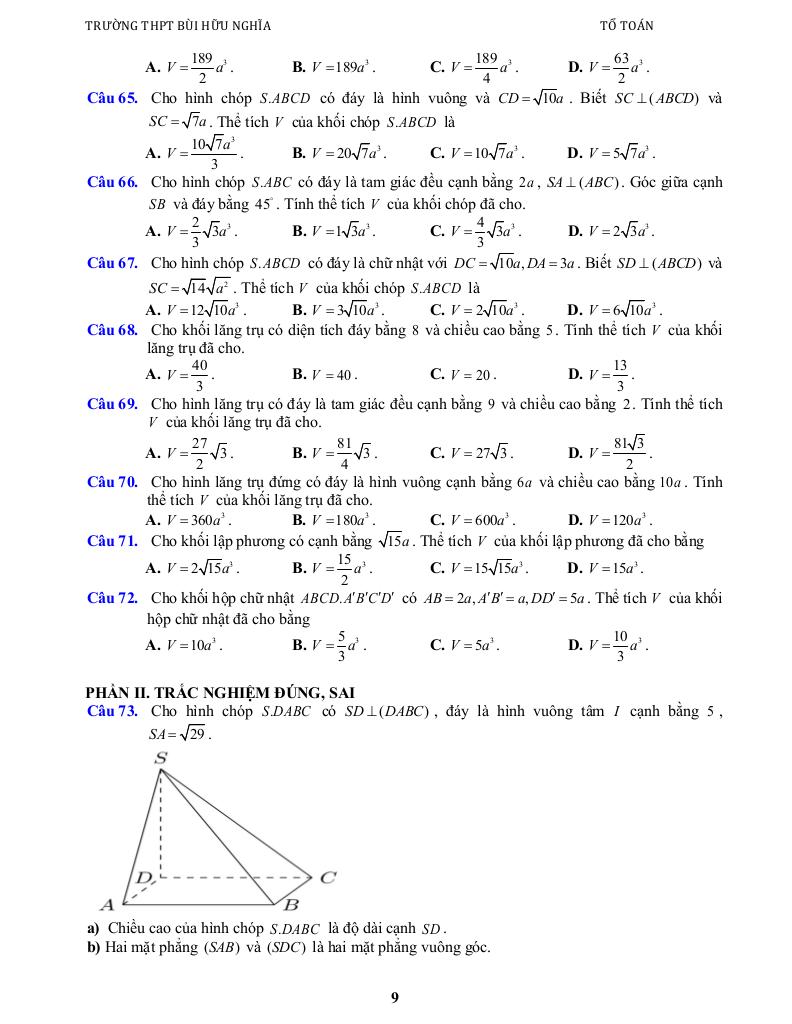 + Bài 6. Hình lăng trụ đứng. Hình chóp đều. Thể tích của một số hình khối.