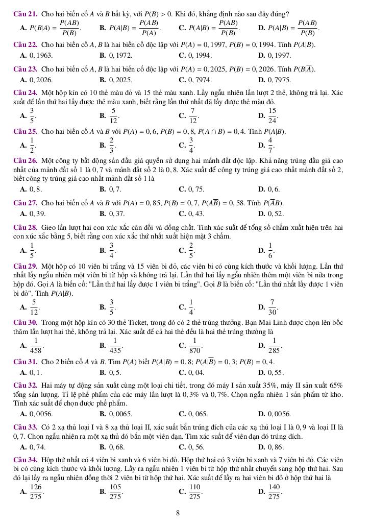 III. Xác suất có điều kiện.