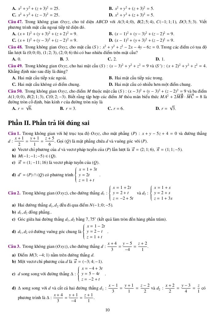 Phần II. Phần trả lời đúng sai.