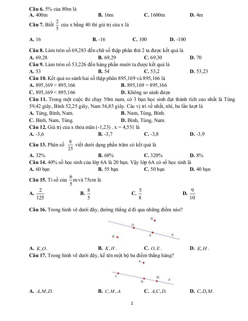 Giải Toán đề cương cuối kỳ 2 toán 6 năm 2025 – 2026 trường thcs dương văn mạnh – tp hcm với Đáp Án Mới Nhất
