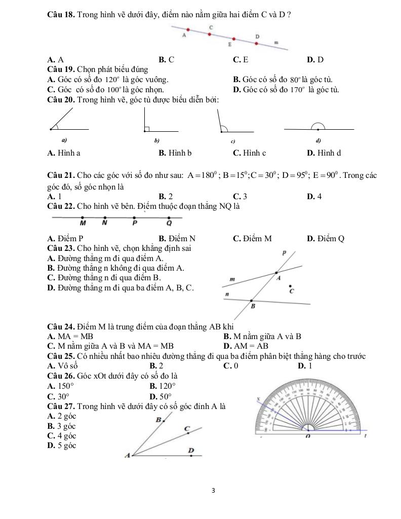+ Điểm, đường thẳng, tia, đoạn thẳng, đường thẳng song song và cắt nhau.