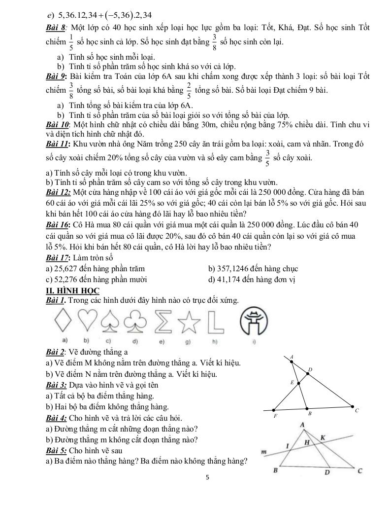 + Tỉ số, tỉ số phần trăm, các bài toán về tỉ số phần trăm.