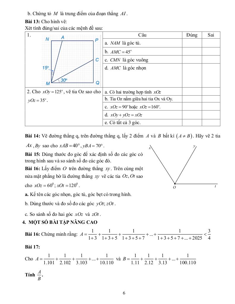 – Hình học: Đến hết nội dung: Số đo góc.