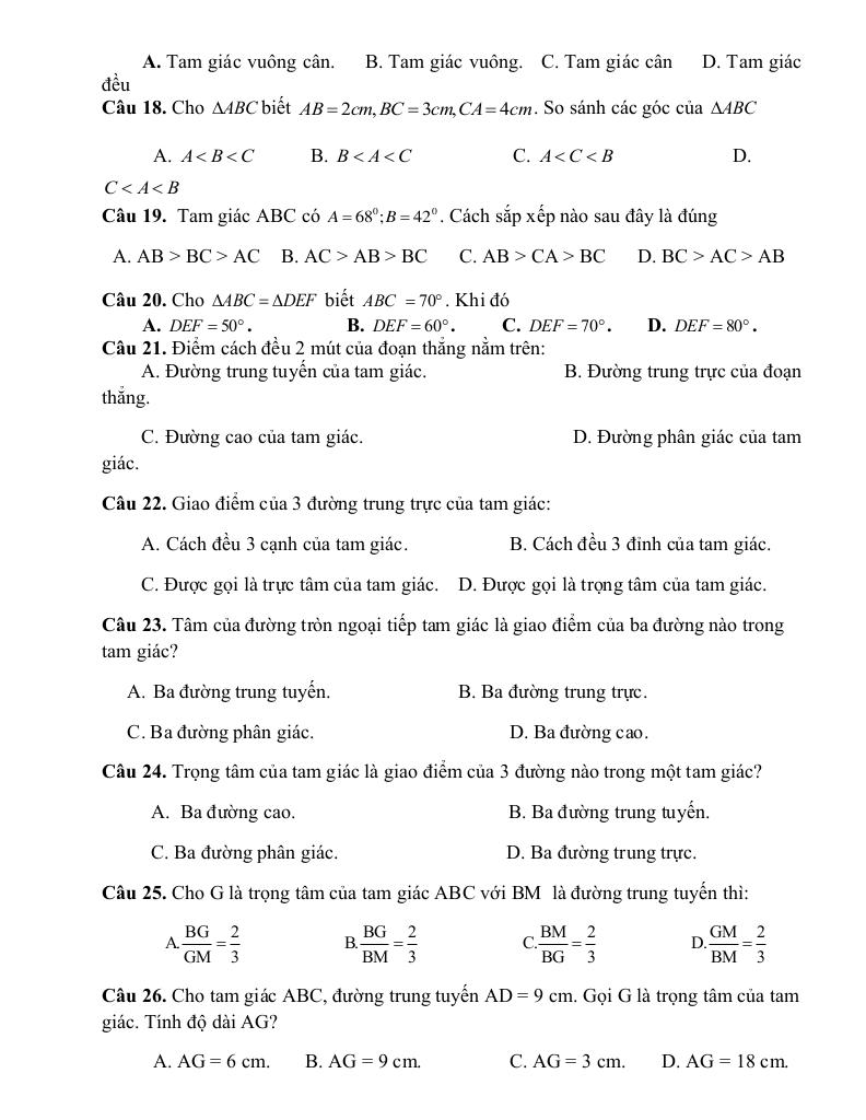 – Tam giác cân, tam giác đều. Tính chất của tam giác cân.
