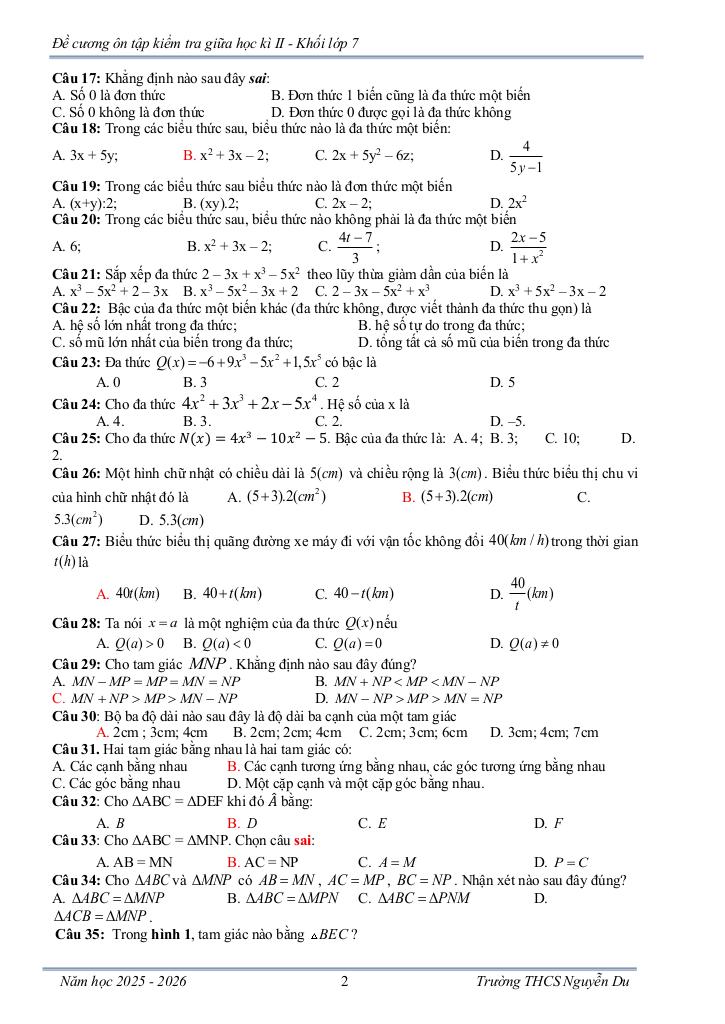 đề cương giữa học kì 2 toán 7 năm 2025 – 2026 trường thcs nguyễn du – lâm đồng tại chuyên mục