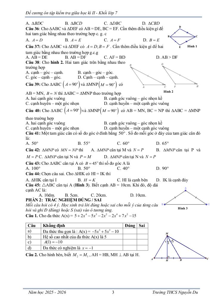 Giải Toán đề cương giữa học kì 2 toán 7 năm 2025 – 2026 trường thcs nguyễn du – lâm đồng với Đáp Án Mới Nhất
