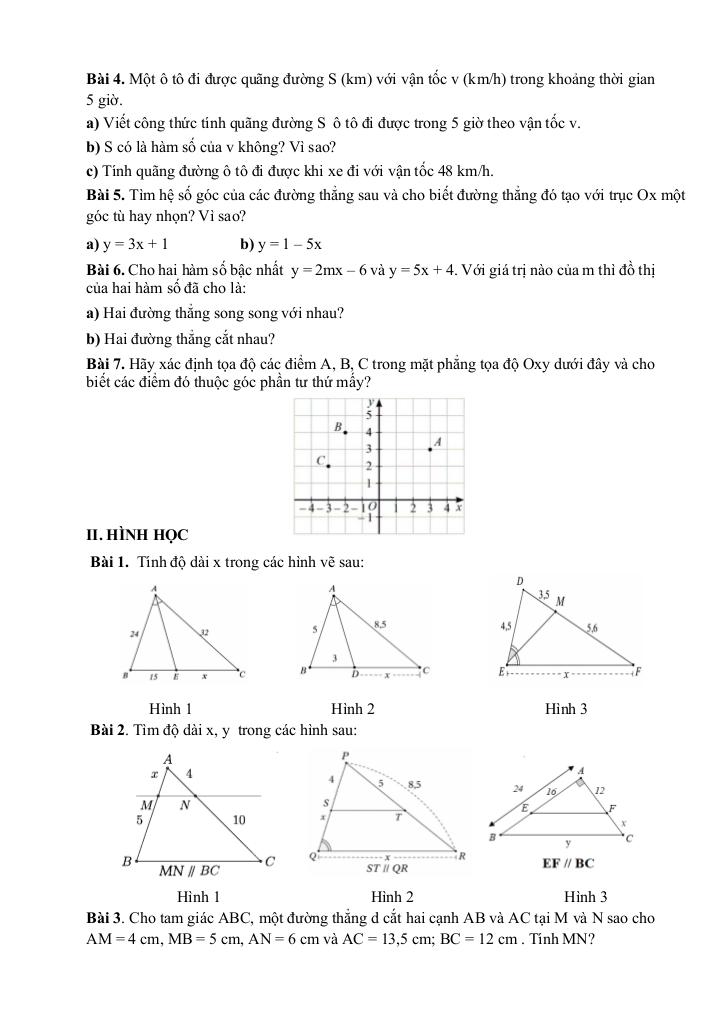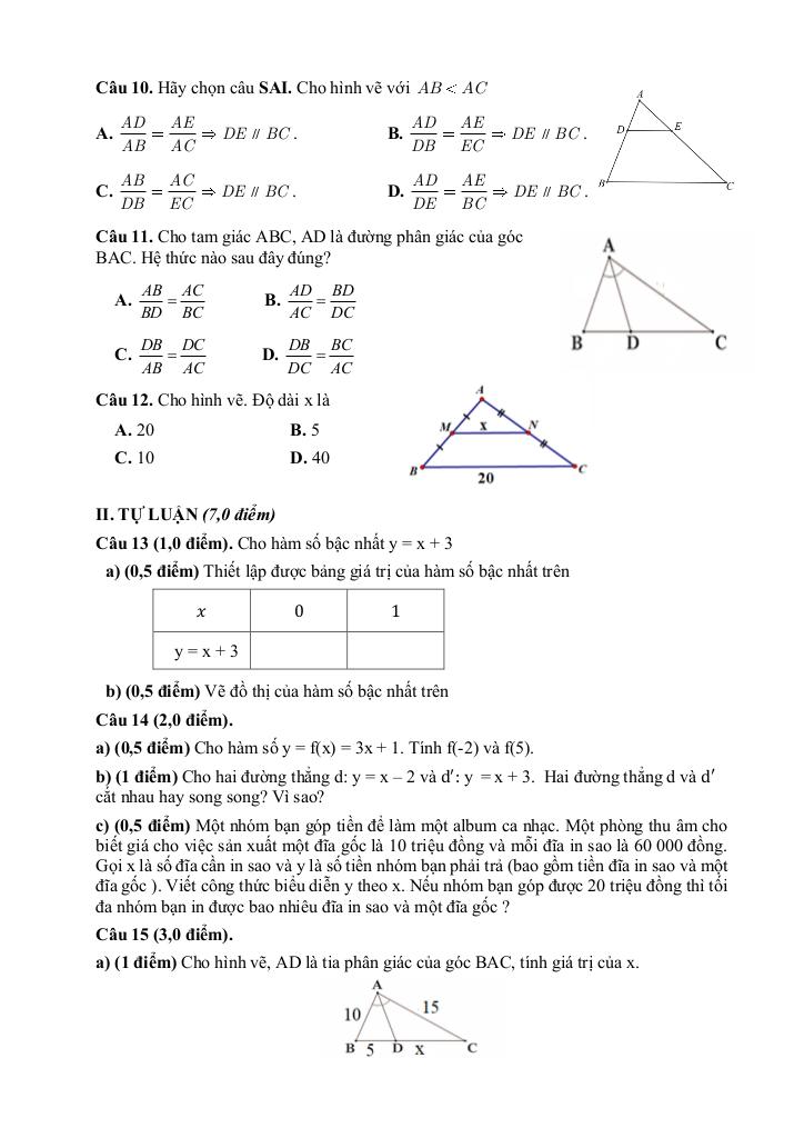 1. Định lí Thalès trong tam giác.
