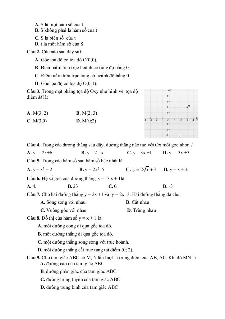 2. Tọa độ của một điểm và đồ thị của hàm số.