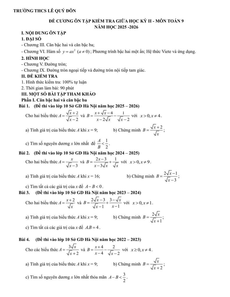 Toán học luôn là một môn học quan trọng, giúp học sinh phát triển tư duy logic và kỹ năng giải quyết vấn đề. Để hỗ trợ các bạn học sinh và giáo viên trong việc học tập và giảng dạy, bài viết này sẽ cung cấp lời giải chi tiết và đáp án chính xác cho chủ đề đề cương giữa học kỳ 2 toán 9 năm 2025 – 2026 trường thcs lê quý đôn – hà nội, giúp bạn hiểu sâu và tự tin hơn khi làm bài tập.