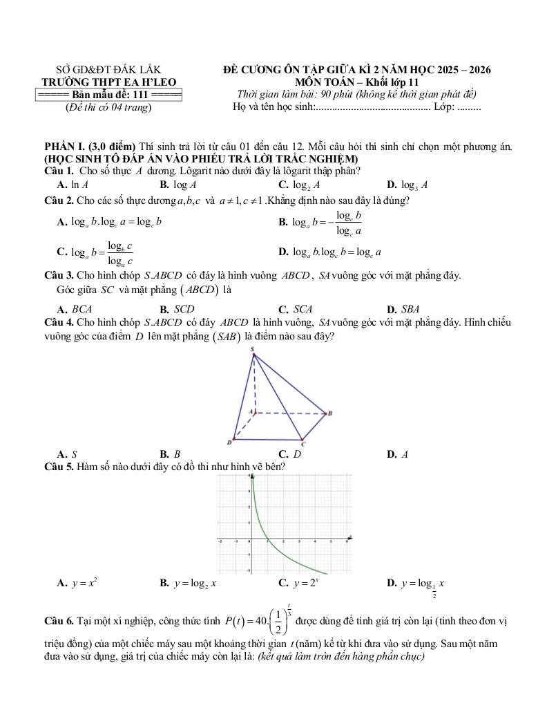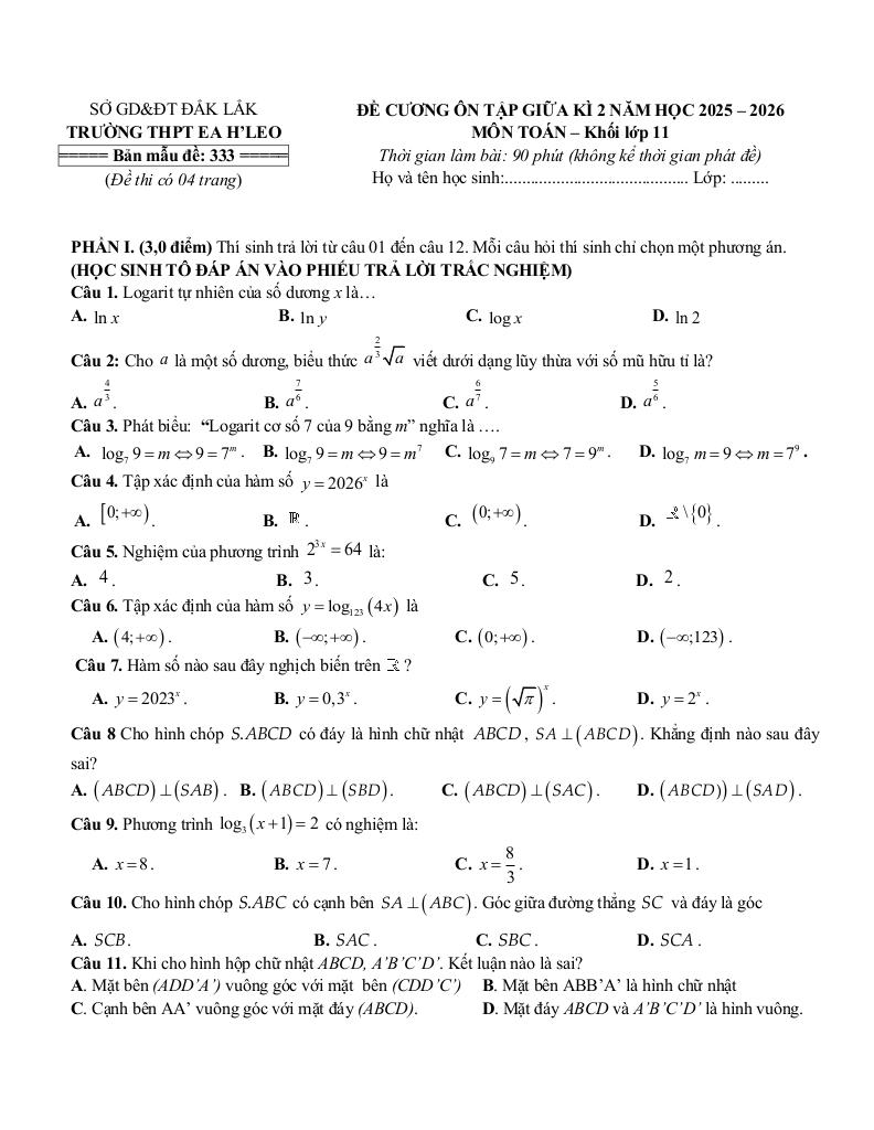 Giải Toán đề cương giữa kì 2 toán 11 năm 2025 – 2026 trường thpt ea h’leo – đắk lắk với Đáp Án Mới Nhất