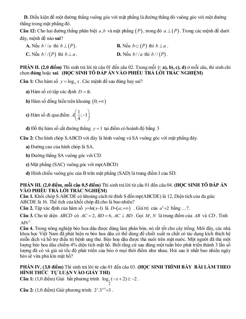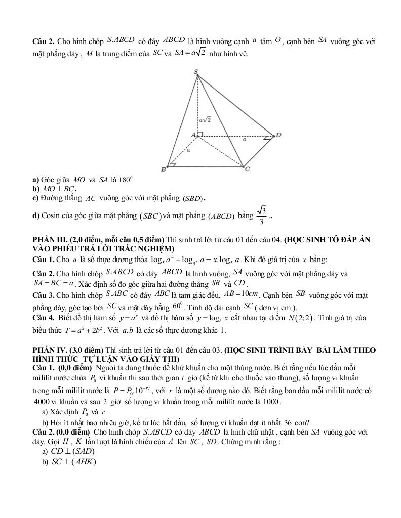 - Trình bày lời giải rõ ràng và khoa học.