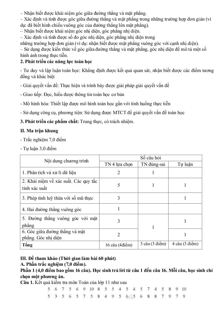 – Nhận biết được mối liên hệ giữa thống kê với những kiến thức của các môn học khác trong Chương trình lớp 11 và trong thực tiễn.