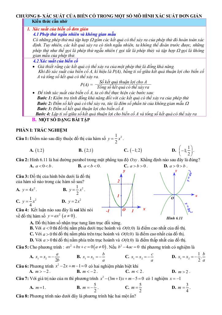 Chương 6. Hàm số y = ax2 (a khác 0). Phương trình bậc hai một ẩn.
