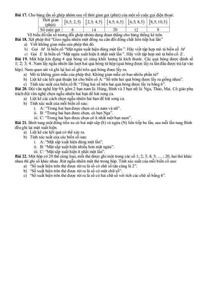 Chương 8. Xác suất của biến cố trong một số mô hình xác suất đơn giản.