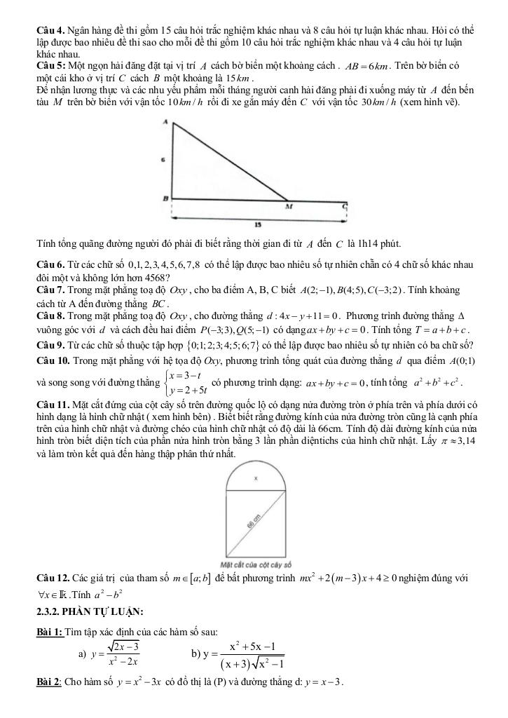 – Bài toán thực tế ứng dụng phương trình đường thẳng, công thức tính góc và khoảng cách.