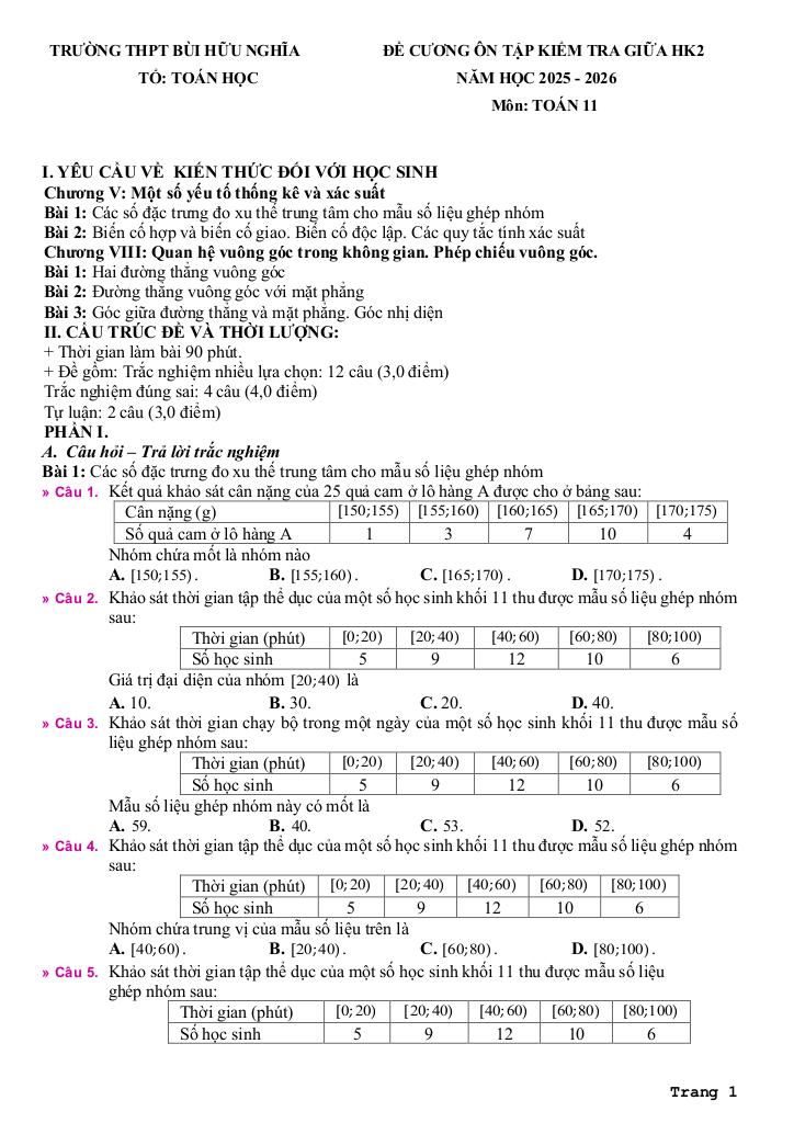 Toán học luôn là một môn học quan trọng, giúp học sinh phát triển tư duy logic và kỹ năng giải quyết vấn đề. Để hỗ trợ các bạn học sinh và giáo viên trong việc học tập và giảng dạy, bài viết này sẽ cung cấp lời giải chi tiết và đáp án chính xác cho chủ đề đề cương giữa kỳ 2 toán 11 năm 2025 – 2026 trường thpt bùi hữu nghĩa – cần thơ, giúp bạn hiểu sâu và tự tin hơn khi làm bài tập.