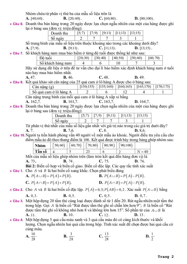 + Bài 2: Biến cố hợp và biến cố giao. Biến cố độc lập. Các quy tắc tính xác suất.