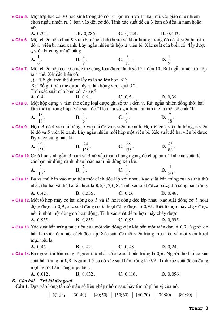 + Trắc nghiệm nhiều lựa chọn: 12 câu (3,0 điểm).